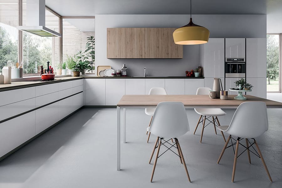 L shaped modular kitchen is the most eminent and loved Kitchen shape due to its versatile arrangement to make use of the optimum space utilization. L shaped kitchen offering you the triangle working area while providing the space of dining table in the kitchen. Availability of various cabinets to keep the accessories & Kitchenware make L shaped layout more of organizing and spruce up look. L shape kitchen made of the premium quality of wood, marble, tile and granite add the regality to your kitchen space.